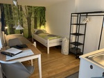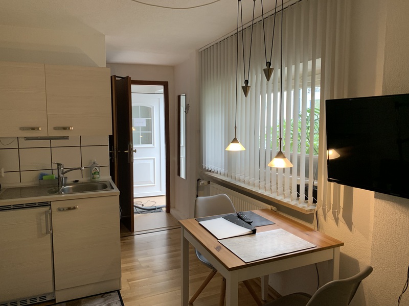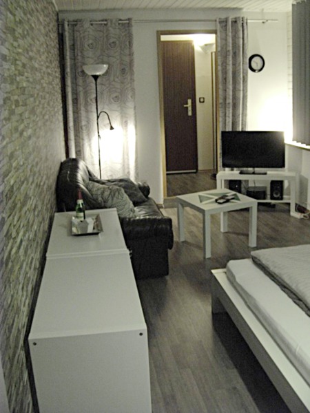 Unsere Licht durchflutete ca. 25 qm möblierte Ferienwohnung liegt in einer ruhigen und zentralen Lage. Für max. 2 Personen bietet die Wohnung ein 1,60 m Doppelbett (2 Matratzen 0,80 m x 2,00 m), natürlich mit zwei Kopfkissen und zwei Bettdecken, einen Kleiderschrank, eine Ledercouch, Sat TV und ein Duschbad. Bettwäsche und Handtücher können gerne mitgebracht werden oder wie auf der Preisliste ersichtlich dazu bestellt werden. Die Pantryküche ist ausgestattet mit einem Kühlschrank (3*** Gefrierfach), 2 Herdplatten, Toaster, Wasserkocher, Mikrowelle und Kücheninventar. Die Fußböden bestehen aus Holz und Fliesen.
