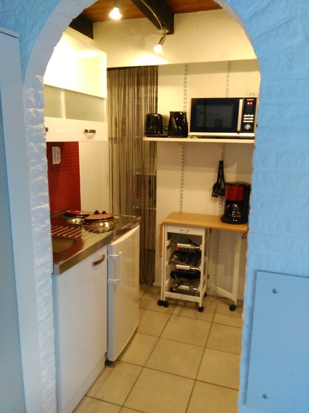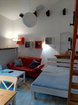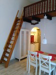 Im 1. Stock liegt unsere zweite möblierte Ferienwohnung, die ca. 25 qm groß ist. Die Wohnung ist gemütlich und hell. Für max. 2 Personen hat die Wohnung ein Futonbett mit einer 1,40 m Matratze (ebenfalls mit Kopfkissen und Bettdecken bestückt). Bettwäsche und Handtücher können gerne mitgebracht werden oder wie auf der Preisliste ersichtlich dazu bestellt werden. Ein Kleiderschrank, eine Ledercouch, Sat TV, eine kleine Stereoanlage mit integriertem DVD Player und ein Duschbad stehen Ihnen zur Verfügung. Die Küche ist mit einem Kühlschrank inkl. 3*** Gefrierfach, zwei Herdplatten, Toaster, einer Kombi-Mikrowelle und Kücheninventar ausgestattet. Der Fußboden besteht aus Holz und ist mit einem Linoleumbelag ausgelegt.