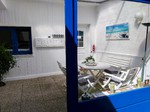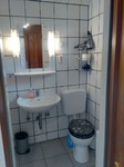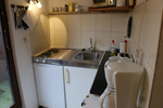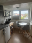 Ein Kleiderschrank, eine Ledercouch, ein Sat TV und eine kleine Stereoanlage mit integriertem DVD Player stehen Ihnen zur Verfügung. Die Küche ist mit einem Kühlschrank inkl. 3*** Gefrierfach, zwei Herdplatten, Toaster, einer Kombi-Mikrowelle und Kücheninventar ausgestattet. Ein Esstisch mit einer Sitzbank und zwei Stühlen stehen zur Verfügung. Der Fußboden im Wohnraum besteht aus PVC-Auslegeware und darf nicht mit Stöckelschuhen betreten werden. Die Küche/Flurbereich und das Badezimmer sind gefliest.