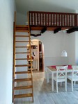 Die Treppe ist auf eigene Gefahr zu benutzen und endet in einer Höhe von 2,20 m. Der Vermieter haftet nicht für etwaige Unfälle. Sportliche und bewegliche Menschen können diese Treppe gut benutzen.